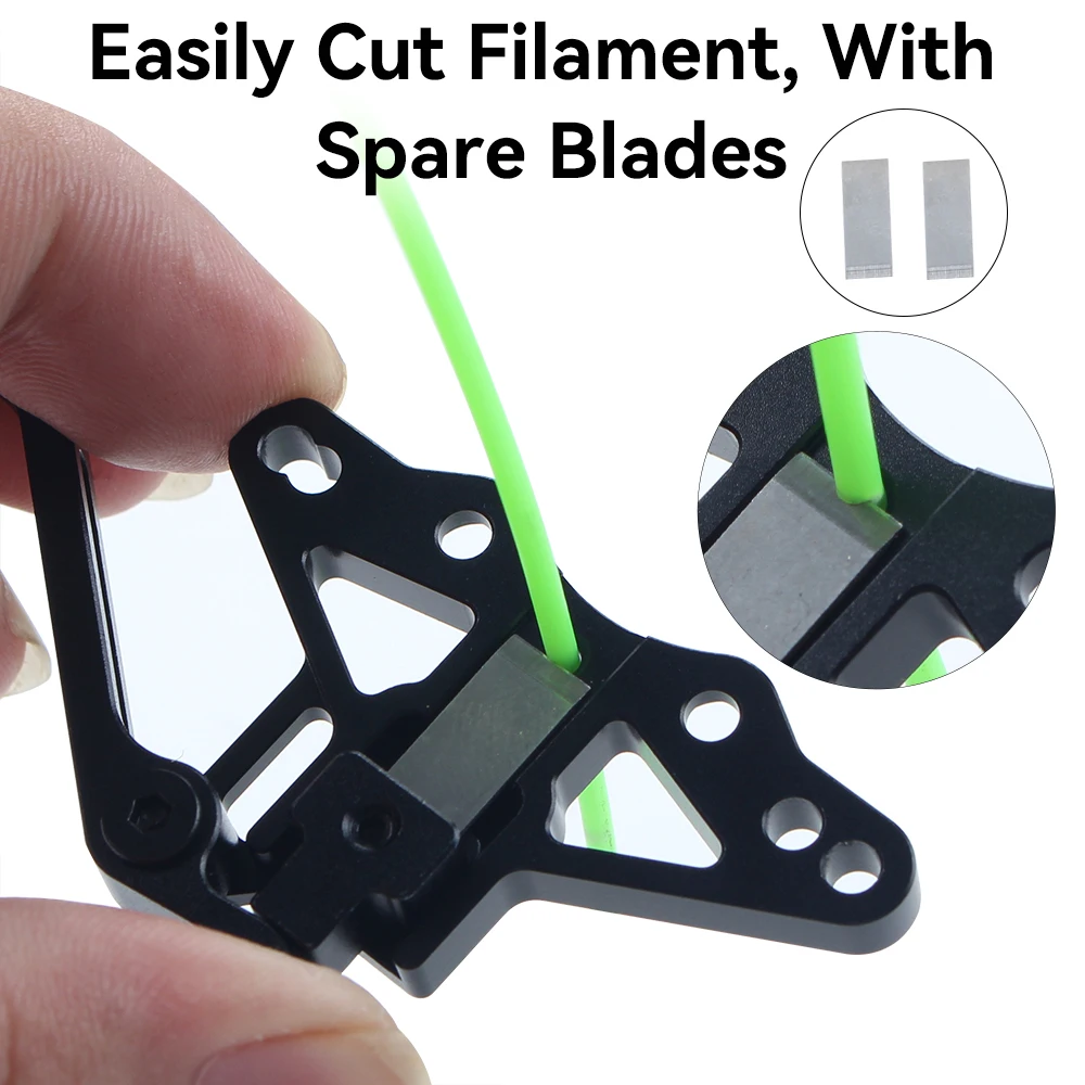 Best filament cutter I've used by far. Lever is nice and long for lower actuation force than other cutters and the magnet returns it with a satisfying feel.. Blade can be changed without removing the extruder. If it took full length, olfa blades, it would be perfect.